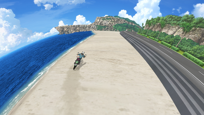 髙木 アクションまわりは、CGスタッフにがんばっていただきました。ドームの大きい画面だと、どこまで作画にして、どこからCGでやるかというのが難しいんです。「崖をバイクで駆け上がるような、むちゃなくらいのアクションをやりたい」というのを絵コンテで提示して、CGさんがそれにあわせて見事に作ってくださった。あと、派手なアクションに入る前に、バイクで後ろに下がって助走をつけるシーンがあるんですが、そういった盛り上がりの前に停滞するような“ダレ場”というか、アクションの合間に息抜きポイントを作るのも好きですね。