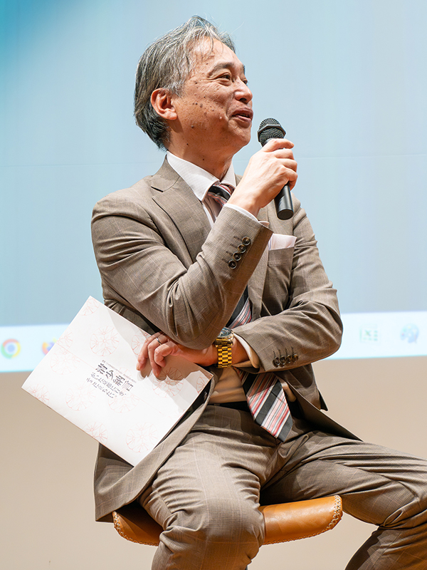 講演会の第一部では、「週刊文春エンタ+」(文藝春秋)の編集長・薗部真一氏を聞き手に、片渕監督が制作過程を語った。