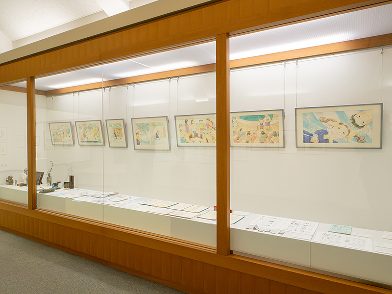 ガラスケースの展示エリアでは、原画に加えて道具類などの展示も行われていた。