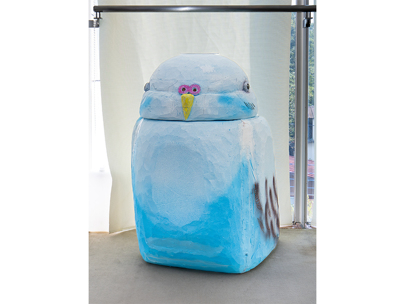 こうの展は、すべての会場でこうの史代宛の手紙が書けるようになっていて、その手紙を投函するためのポストをオリジナルで作ることが約束事になっている。佐倉市立美術館では、作品に登場するインコの「ぴっぴらさん」をスタイロフォームから削り出して自作した。なお、ダルマのように、インコの目にスミを入れたのはこうの史代自身だ。