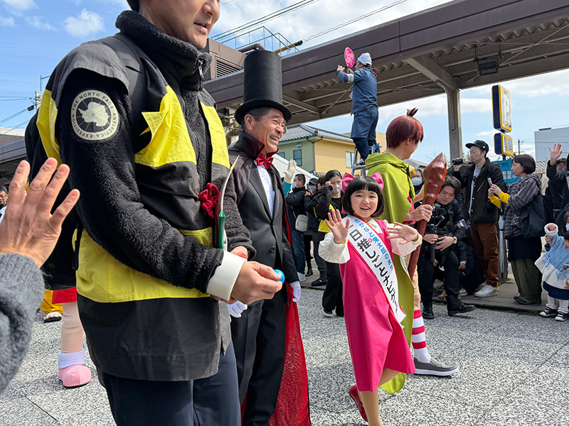妖怪に扮しての「妖怪パレード」は、まず参加者が非常に多かったと思います。また沿道での観覧者もすごく多かったです。しかもこれまではパレードに参加した人と観覧の人とに少し温度差がありましたが、今回は観覧の方が妖怪の名前を呼んで手を振ってくれたり、すごくリアクションがよく傍観者ではなかった。参加者も手を振り返したり、両者の一体感がすごくあり、皆さん笑顔でとてもよかったです。今までで一番よいパレードだったように思います。
